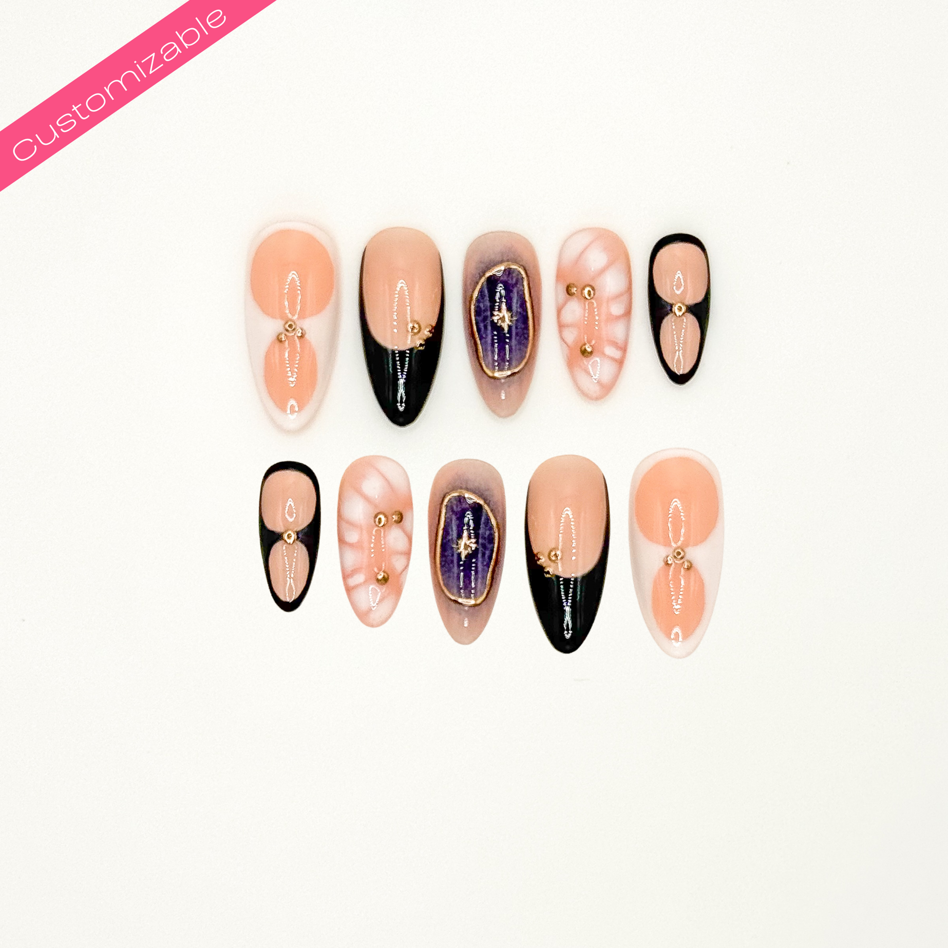 This set has a little bit of everything!. You can get this set as is or customize the colors, as well as the length and shape of the nails.
